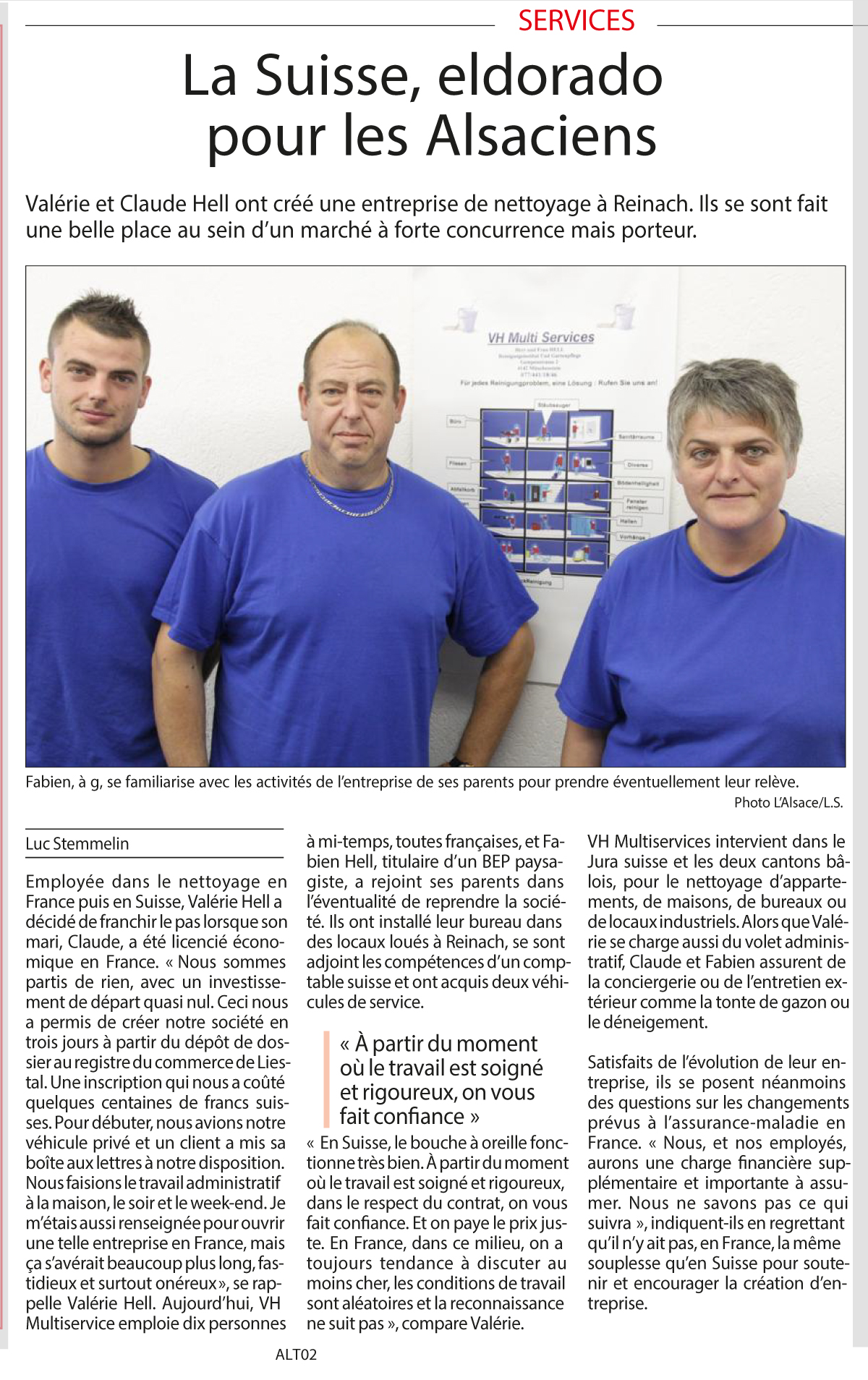 "Nous avons ouvert, mon mari et moi, notre entreprise sur le secteur de Bâle en janvier 2007. Étant dans le domaine du nettoyage depuis 20 ans, nous avons décidé de nous lancer à notre propre compte.